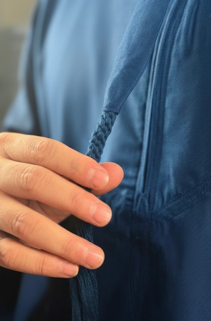 The Emirati Thobe (Kandura) is the national dress of the UAE, known for its sleek, tailored fit and collarless neckline. Its signature feature is the tassel (Al Farukhah), a long cord hanging from the chest, which adds a traditional touch of elegance. This simple, ankle-length robe is typically made from lightweight white fabric, offering a clean, sophisticated, and comfortable look that reflects both deep cultural pride and modern style.